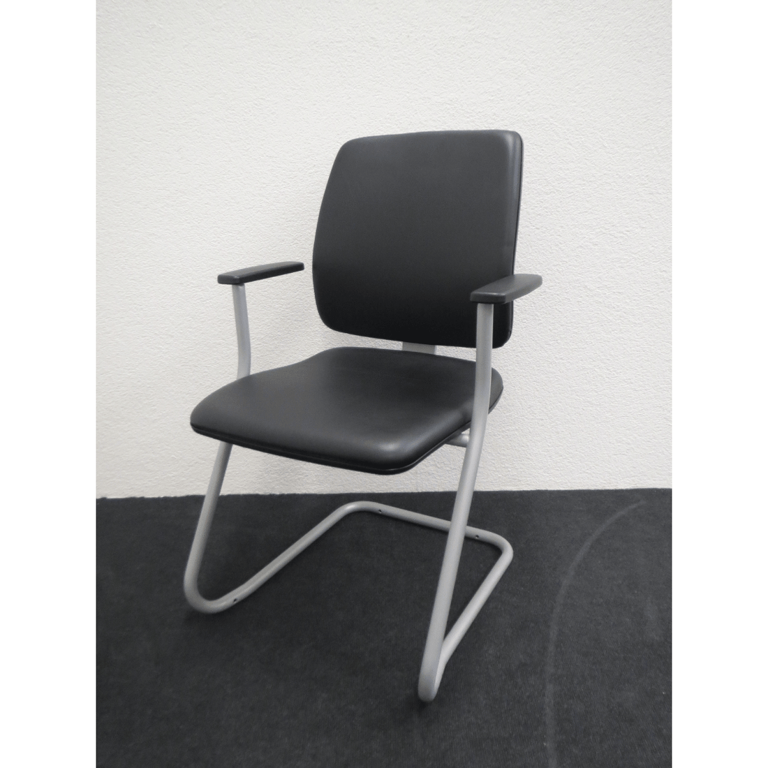 Sedus Sitzungsstuhl Early Bird – Echtleder Schwarz, Freischwinger Silbergrau, Stapelbar, Gebraucht