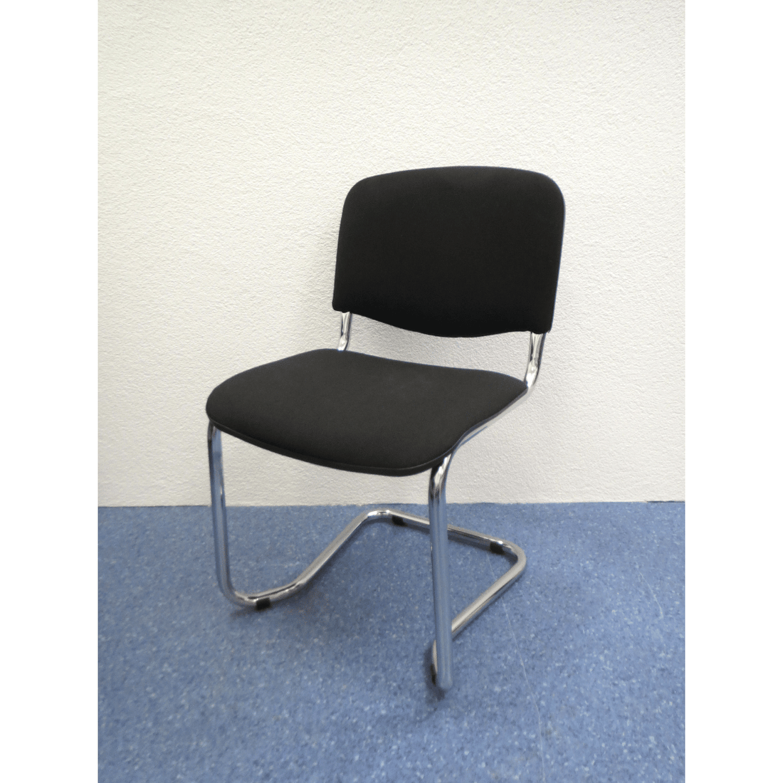 Sitag Besucherstuhl EL100 – Netzrücken Schwarz, Stoffsitz Schwarz, 4-Fussgestell Mattverchromt auf Rollen, Gebraucht