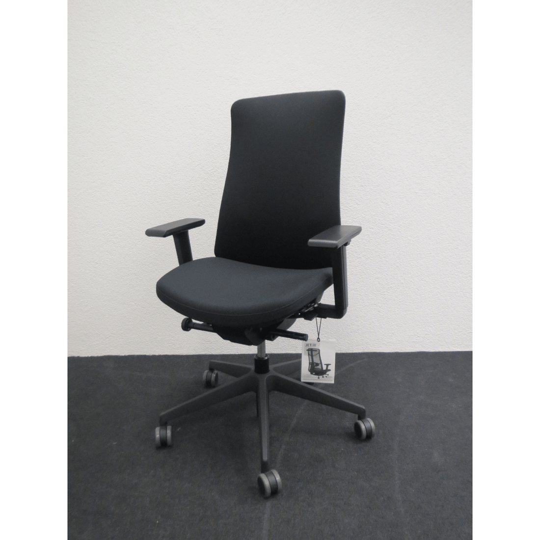 König + Neurath JET III Drehstuhl – Stoffrücken & Stoffsitz schwarz, verstellbare Armlehnen, Bandscheibenstütze, Schiebesitz, Sitzneigeverstellung – Neu ab Lager