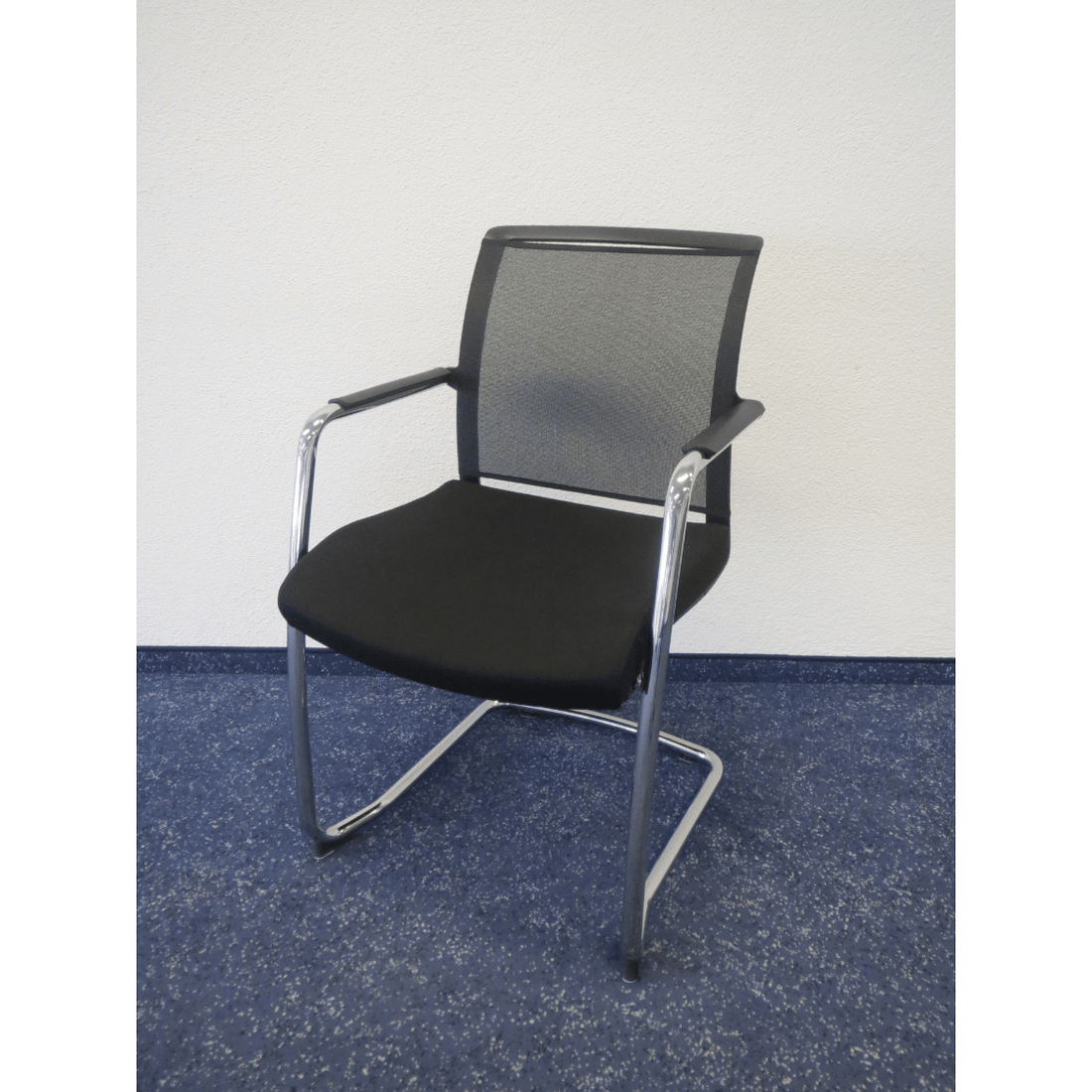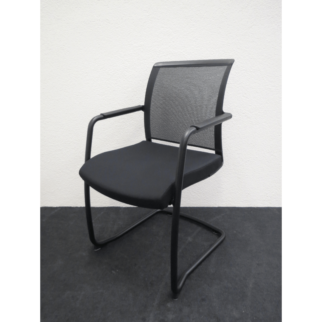 Nowy Styl Sitzungsstuhl Z-Body – Freischwinger, Netzrücken & Sitz Schwarz, Stapelbar, Gebraucht