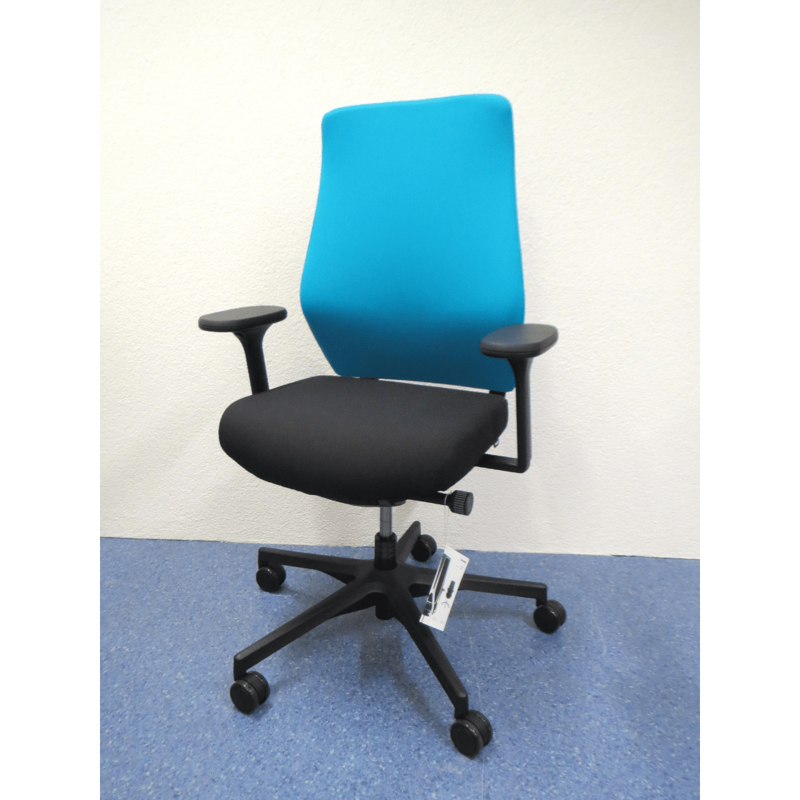 Der Nowy Styl Denuo Drehstuhl vereint Komfort, Ergonomie und modernes Design. Der Rücken mit mit Stoffbezug hellblau daher. Die Sitzfläche mit schwarzem Stoffbezug sorgt für angenehmes Sitzen über lange Arbeitstage hinweg und ist gleichzeitig robust und pflegeleicht.