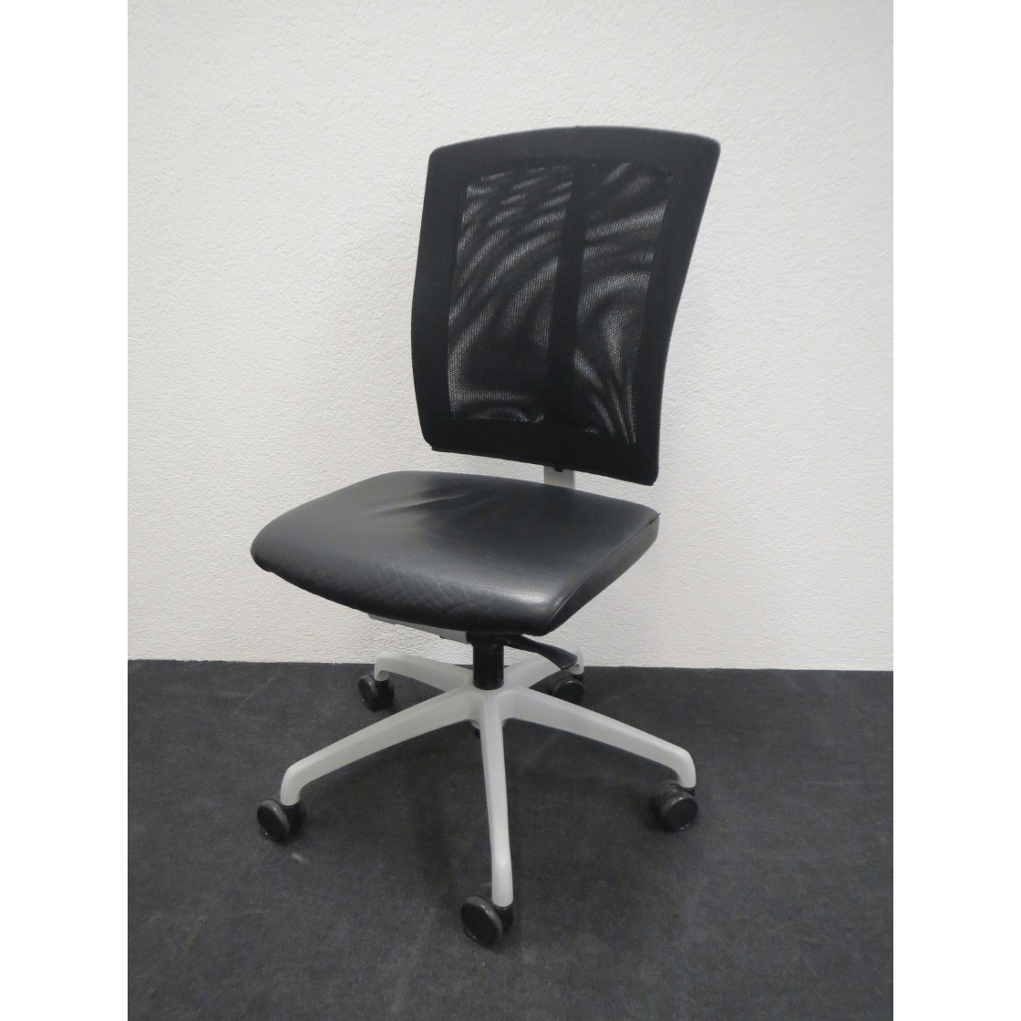 Dank der integrierten Rollen und der Drehfunktion bietet der Stuhl optimale Bewegungsfreiheit und Flexibilität im Arbeitsalltag. Der atmungsaktive Netzrücken sorgt auch bei längeren Meetings für angenehmen Sitzkomfort, während die gepolsterte Echtleder-Sitzfläche hochwertiges Sitzgefühl vermittelt.