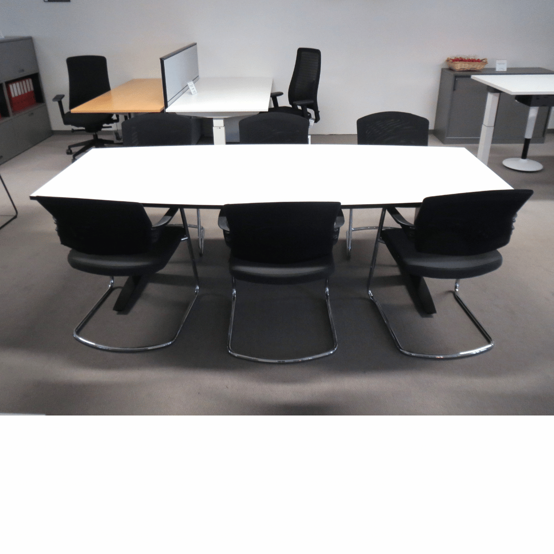 Der Tisch ist neu und ab Lager verfügbar, was eine schnelle Verfügbarkeit gewährleistet. Er eignet sich ideal für Konferenzräume, Besprechungszimmer oder als zentraler Arbeitstisch in modernen Büroumgebungen.